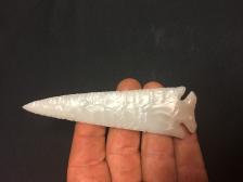 Slick piece of novaculite percussion knapped with heavy pressure flaking really nice flake scars on it |