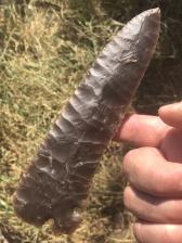 This Corner Tang is made from a fantastic piece of Texas Root Beer. Color is brown with cream areas and one swirl. Awesome material. Hard to get good photos of this one.