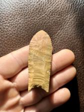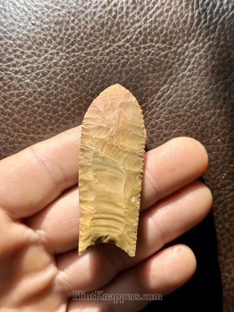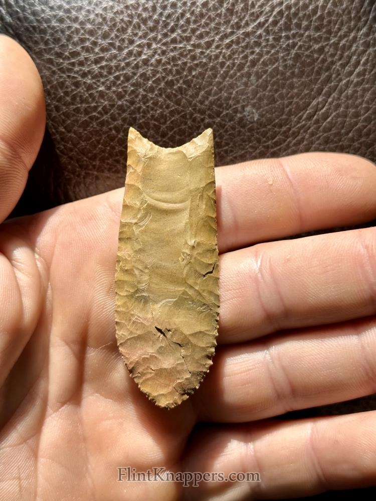 An amazing piece from material to style. Looks like an amazing day spent arrowhead hunting in fields with a loved one. Dad and I would have gone nuts if one of us found something like this. Hence what got me started knapping in the beginning. Beautiful dove replica |