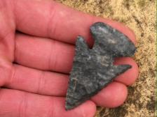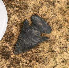 Classic Black,Blue and Grey Coshocton I dug in Sommerset, Ohio. Hammer stone percussion, notched with Buffalo rib bone and after I finished the blade I resharpend it a few times to a bevel with an antler tine and the base is ground.absolutely a beautiful replica. |