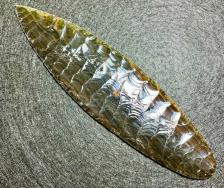 This cougar mountain point is made with gold sheen obsidian from Glass Butte Oregon