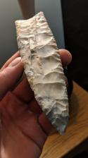 I don't know how this point managed to stay together but here it is. It was fluted and then reflaked with nearly edge to edge percussion flakes