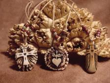 Her eis a beautiful cross carved from a slice of 10,000 year old mammoth tusk, the color patina is natural , I inked the ivory to bring out detail.