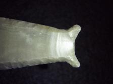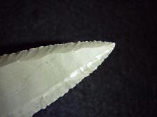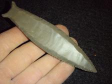This is a well made cumberland knapped from a nice light piece of Horn Stone.