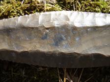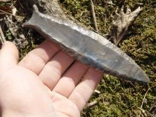This killer Cumberland is made from Horn stone. Fully fluted on both sides. Look at all the crystals in it, Right at 6 inches this is a big one! |