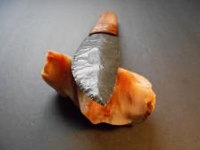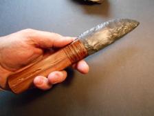A new knife from the shop ~ This one has a Dacite blade that is hafted into a hand carved dogwood handle and wrapped with deer sinew and sealed with bear grease ~ The knife is sharp and functional ~ Shipping included in the price. |