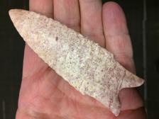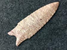 A nice Bob Thomas cream and red speckled Dalton. The material is Burlington. Bob is a master flint knapper who knaps mostly eccentrics now. Knapped Jan, 2000 |