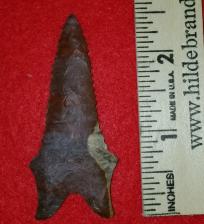 Here is a Dalton Classic knapped by Don Hoffner. It is made from horse creek chert and measures at 2 1/2" x 1". Please add 3 dollars for shipping. |