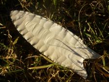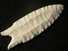 A nice creamy white Steve Behrnes fluted Dalton. The Dalton is made from Paiute Agate. Knapped Aug, 2002. |