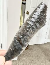 This stylish Hunter blade is made from Northern California Damascus obsidian.