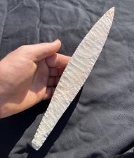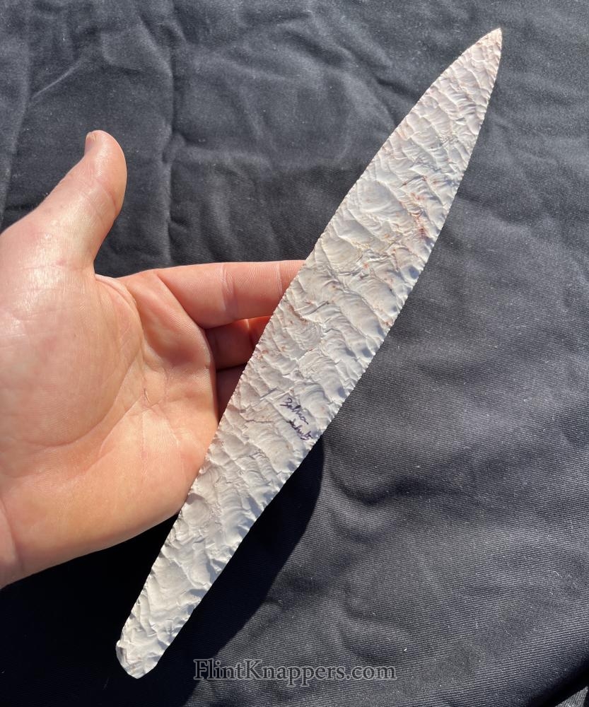 A complete set of the six main types of danish daggers. All knapped from keokuk chert with antler percusion and copper punch and pressure. I have not seen a complete set available before. Included is a black walnut display case to showcase the set of daggers. This is currently on display at The Vault in Calistoga California |