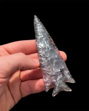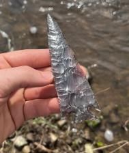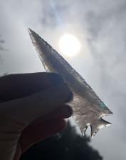 Elko point knapped with antler and stone tools from Davis creek rainbow. Unfortunately the rainbow is at a sub optimal angle, but it’s still a nice point |