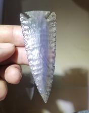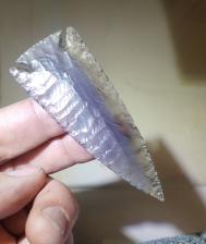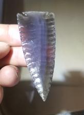 Here is a nice corner notch rainbow point. Blues surrounded by a beautiful gold colored throughout the point. Put this under a light or out in the sun and the colors will really pop out.Thanks for viewing |