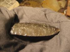 Sweet little lance point made from Davis Creek rainbow obsidian.