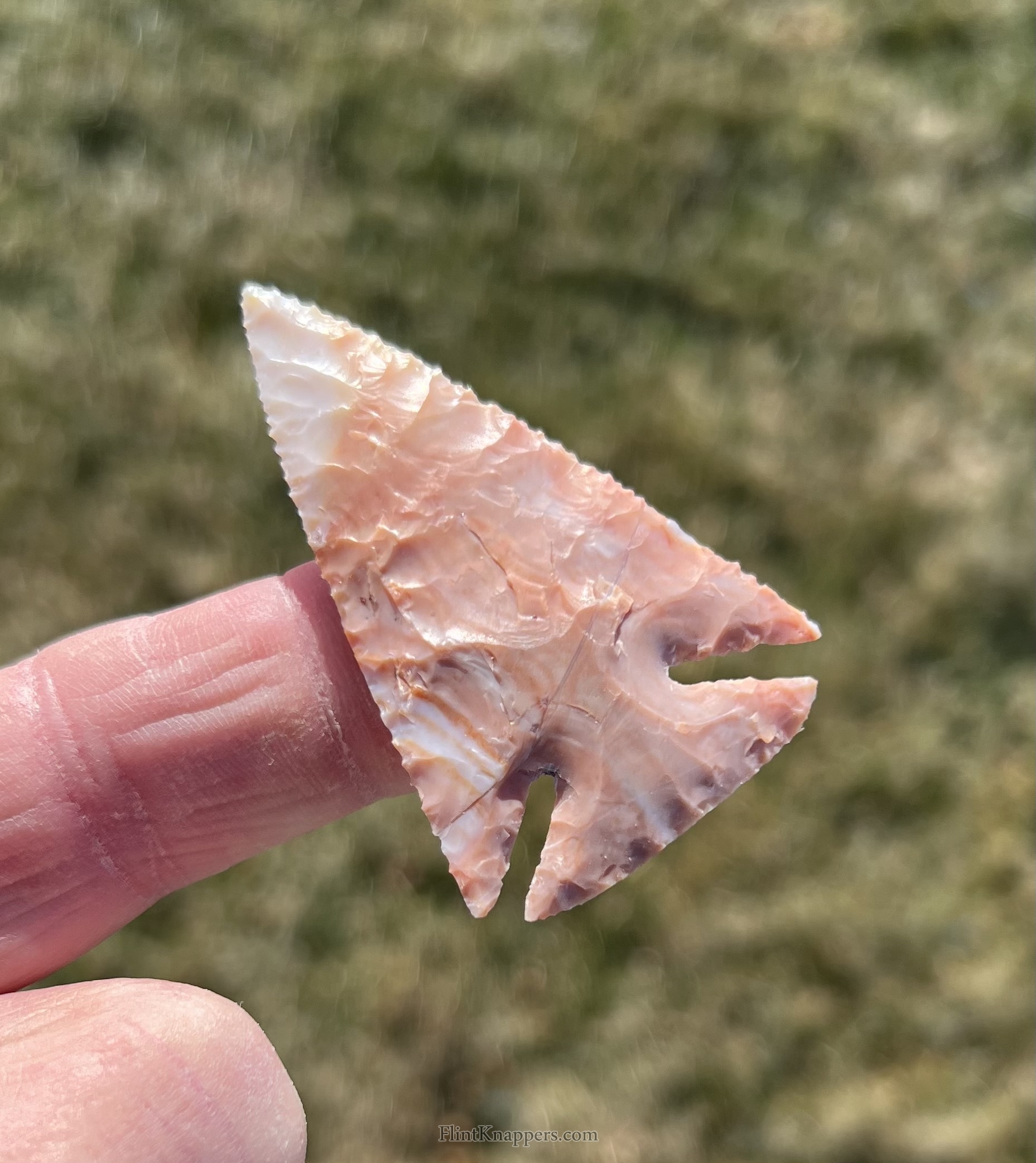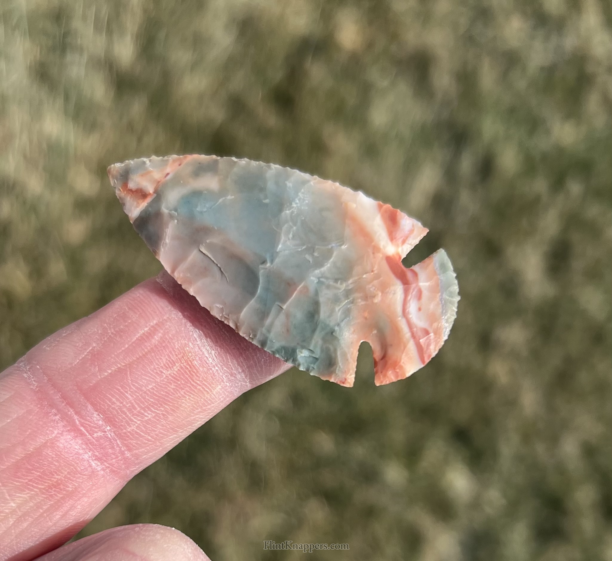A little dovetail point made from flintridge material that has deep notches. |