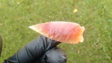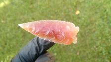 Very nice Deep Water Creek, AKA Sanish, in beautiful Carnelian. Exceptional gloss, were talking obsidian levels of shine. Good flaking and balance. I cant be the only guy who likes Deep Water Creek points! I never see them posted, but something about them i find quite appealing.