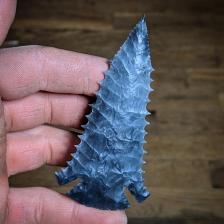 I love the shape of this one! I had a one flake between the serrations crush on me, which can happen and is the most prevalent danger next to breaking a serration off or having a flake run all the way across and take out a tooth on the other side. For me anyways. I was able to correct it and it turned out pretty well. This is some really nice Flint to chip. Thanks for the rock Michael Newman