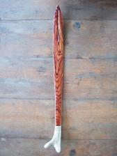 made of highly figured cocobolo wood and whitetail deer antler, this atlatl performs as good as it looks. 28'' overall with a flexible body and hand carved spur. the antler handle provides excellent balance and a non-slip grip. |