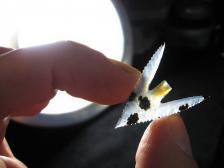 Here's a super fine Gunther arrowhead made from a real unique piece of Montana agate. Large black dendrites look to be just floating in this one. A little bit of black on both barb tips. Paper thin and delicate. |