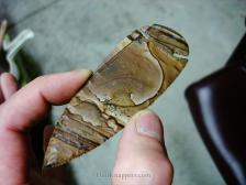 Here's a sweet Dovetail knapped from rare, premium old stock Deschutes Jasper, extremely glossy. Pictures taken in garage on a cloudy day. |
