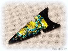 Dichroic Fused Glass Arrowhead (lime yellow with green stripes, Northern Side Notched Point) |
