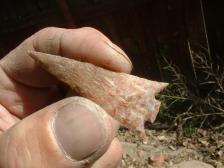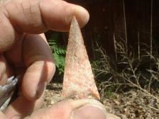 Hi,here is another one from a different chunk, from a long time friend>dave owens...thanx dave ! Anysways...pretty darn nice pt.,,...mostly opaque, red, white & pinkish,2 in. longx 13/16 wide,nice pt,VERY rare rock.Thanx again ! |