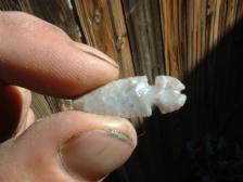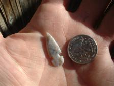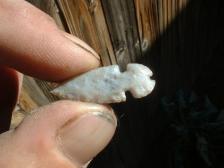 Hi all,I have a new bone pt.,fairly see through,not much for cells.Not the most perfect pt.,but rare dino-bone.It broke 2x knapping it.,anysways...neat rare piece.,appx 1 3/16 in. long. Thanx kindly !!! |