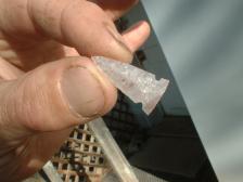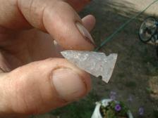 HI ! Another very small one, with a few red spots,mostly clear agate ,gem dino-bone,1 1/8 x 5/8 wide,fair pt.,thanx kindly ! > strangest thing,I found this (mostly done)in a box of papers,oops ...??? |