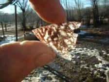 Hi all ! I have one more today,it's a decent pt.,little thick,but for dino-bone,a good one,as they can be a bit rough/tough to make( like this one).It has some red cell walls,showing off the cell's pretty well, Interesting and very rare pt ! Thanx kindly for stopping by ! FYI> I will have at least one more agate pt. tomorrow,.....this .pt. is appx. 1 3/16 x 1 1/16 wide. |