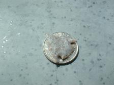 Hi ! I know it does not look much like bone,...,to me it looks more like salisafied sandstone.But,it is dino-bone,100 %,very rare stuff.This bone comes from near Mcelmo canyon,and so,it it does not usually have great cell structure,but alot of it will knapp...very neat tiny bird pt,jus about the size of the quarter it is on. thank you !!! |