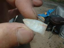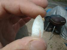 Hi,I have another bone pt. from mcelmo canyon area,this one is mostly white agate ( very clean smooth agate),and again,does not show much for cell structure,but it is bone, 100%.....slightly bigger pt @ 1 in long,ground base..............thank you ! |