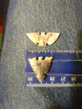 Here's 2dinosaur bone bird effigies. As rare as it gets material wise.hard to come by knappy bone,and this is exceptional bone.thanks for your time and have a good day. |