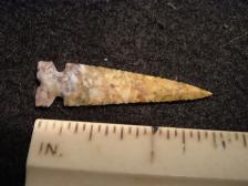 I Knapped this Little Pit House Tri Notch out of some Dinosaur Bone from McElmo Canyon Colorado.Outstanding Point.Thanks for your interest and have a good day. Free shipping in the US.Made in America. A little info,this bone is from the same area as some of the Gemiest Coprolite came from, My Grandpa had the Coprolite tested and pollen was found in it from the trees in the area, the Dino that hung out was Brontosaures, This point will come with a aunthenticity paper stating that it is Guaranteed Bone. any questions please just ask. |