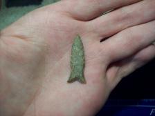 I Knapped this little Dalton style point out of some Rare Dinosaur Bone from the 4 corners are of Colorado.Nice rare little point for any collection. Thanks for your time and have a good day. |