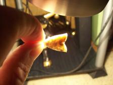 I Knapped this Yadkin style point out of some Raresof Rare Material. Dinosaur Bone from McElmo Canyon Colorado.Totaly awsome and rare material. Thanks for looking and have a good day. |