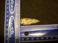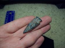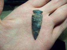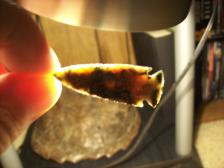 I Knapped this point out of some Rare Fossilized Dinosaur Scat from the 4 corners area of Colorado. Rare coler showed up in this one Green and unusual paterns for the material.Thanks for your continued interest and have a good day. |