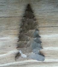 A serrated side notched point made from Dover chert.