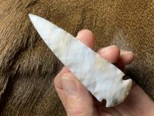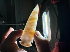 Made from beautiful semi translucent agate from Oregon! This piece was a challenge with seams lined with tiny crystals, happy it turned out. Serrated sharp with nice oblique flaking, thanks for looking! |