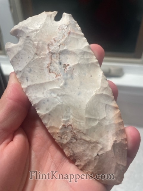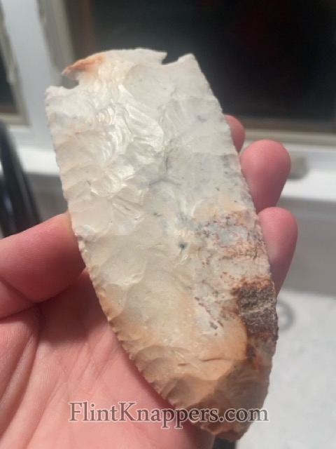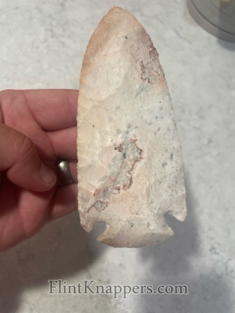 A huge Burlington Dovetail blade. The top half of this blade is a more grainy Burlington and then transitions to a waxy material in the bottom. This point is a handful!