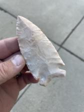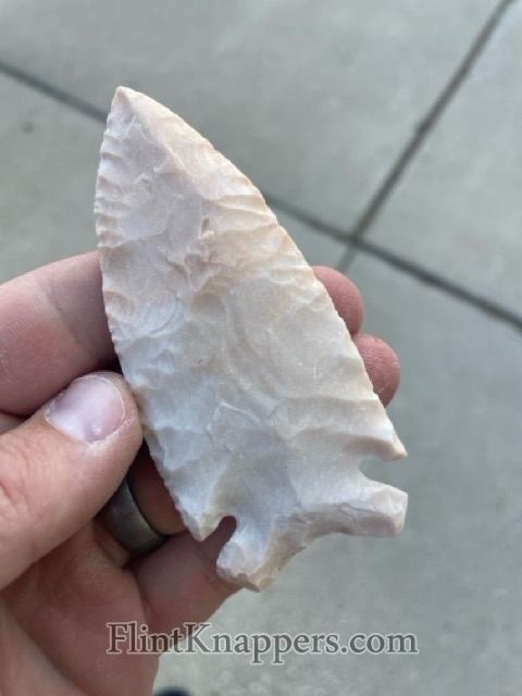 A nice, colorful Dovetail blade. This has great percussion scars followed up by nice pressure flaking. This variety of Burlington has a lot of character and is super slick.