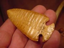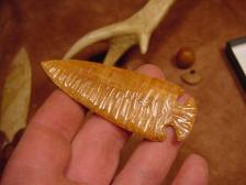 Here is a beautiful "dovetail" carved from a slice of 10,000 year old woolly mammoth tusk , nice flake scars ;) I really like carving the various points so be sure to watch for up coming ones , If you would like to have a special style made please email me.