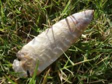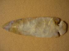 This Flint Ridge Dovetail was knapped by Roy Miller. His Flint Ridge Dovetails are the most popular and sought after on the market. Nice piece with an excellent base on it. Knapped Mar, 2007. |