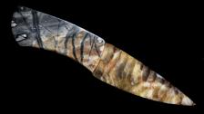 This knife is made from Polka-Dot Jasper and Picasso Marble.
