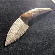 This is not only a beautiful piece but also a very functional hunting knife. The blade is absolutely razor and sharp and would make easy work of skinning an animal. Blade is made of Texas Flint and was percussioned then pressure finished. Whitetail antler handle