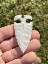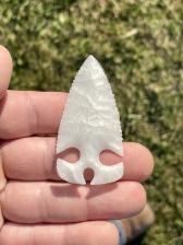A cool tri notched point. Knapped beautifully from high grade translucent novaculite |