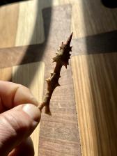 Some rocks just hate being formed. I believe this is coral and it fought me to the bitter end. The eccentricity is where the breaks led me. Turned out neat and something I would never want to get shot with. |
