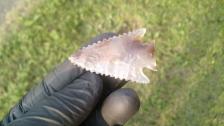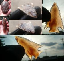 Excellent Elko Corner Notch Variant. Well balanced, good flaking, killer serrations, lean and mean. In a especially nice example of Indian Blue Agate. Super high quality piece of agate, the crystal structure was off the charts, very enjoyable to work. Glass like glossy luster. Smooth, even surface.