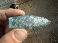 Hi,killer moss agate,but weak structure,pitty,ripply,crystal pockets made it tough to knapp,,but, it came out fairly good ...considering,...slightly rough but a very pretty, & decent piece..jus a hair over 3 in long. Thanx again !!! |