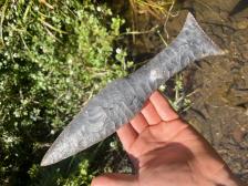 A super translucent Danish dagger made from a phenomenal piece of Danish flint I collected in south east Denmark this summer while studying the original artifacts.this piece I started in Denmark, using the same reduction techniques we believe that the knappers were using in the early Bronze Age when these daggers were first invented. |