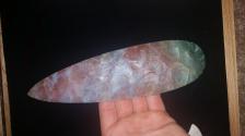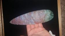 An excellent, large, percussioned knapped blade made of fancy Jasper from india. I worked on this piece for about 6 hours. it was a great opportunity to make a large point from this beautiful material. It will make a great centerpiece in your collection. shipping is included in price